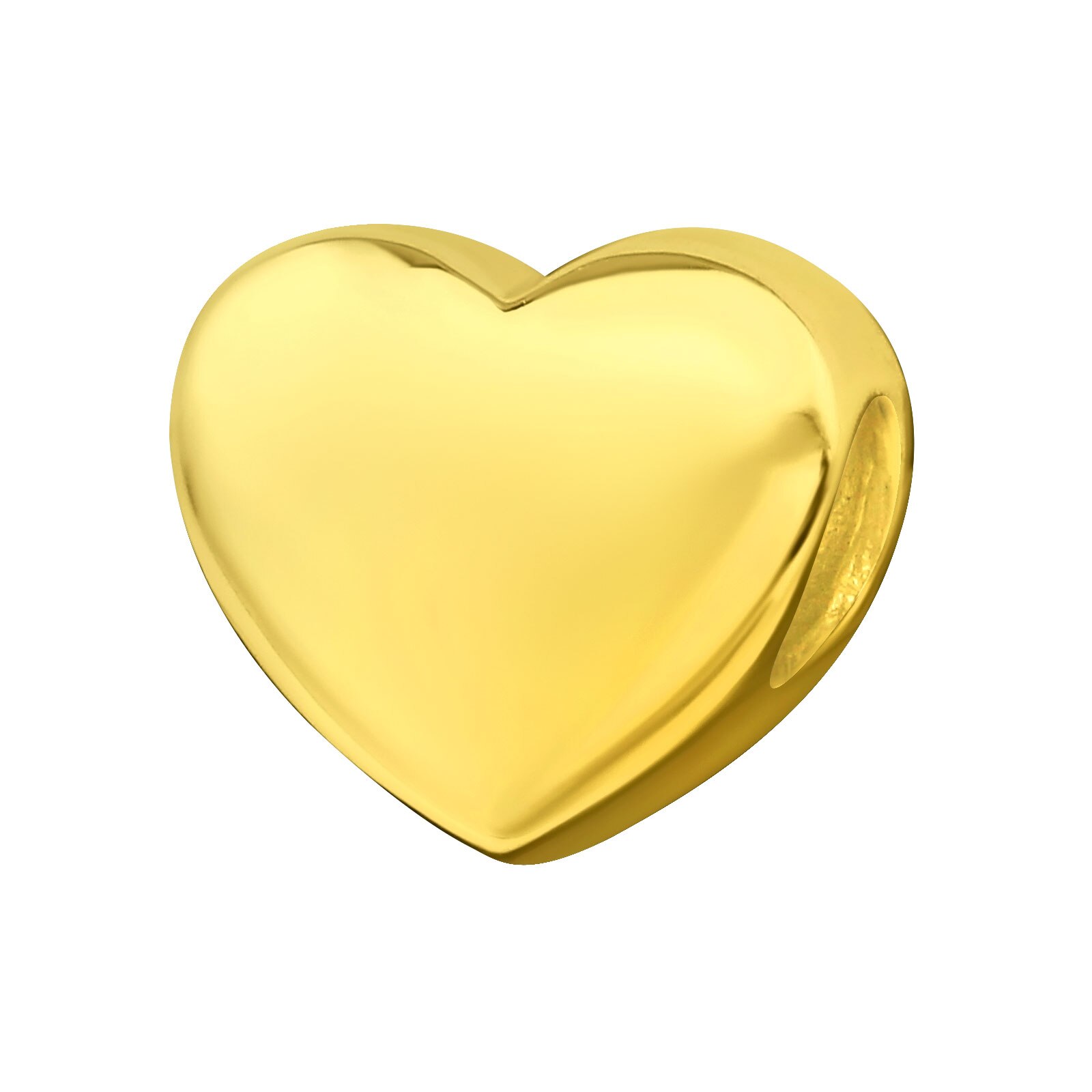 Bead / Cuenta de 100% plata de ley 925 corazón , chapado en oro ,