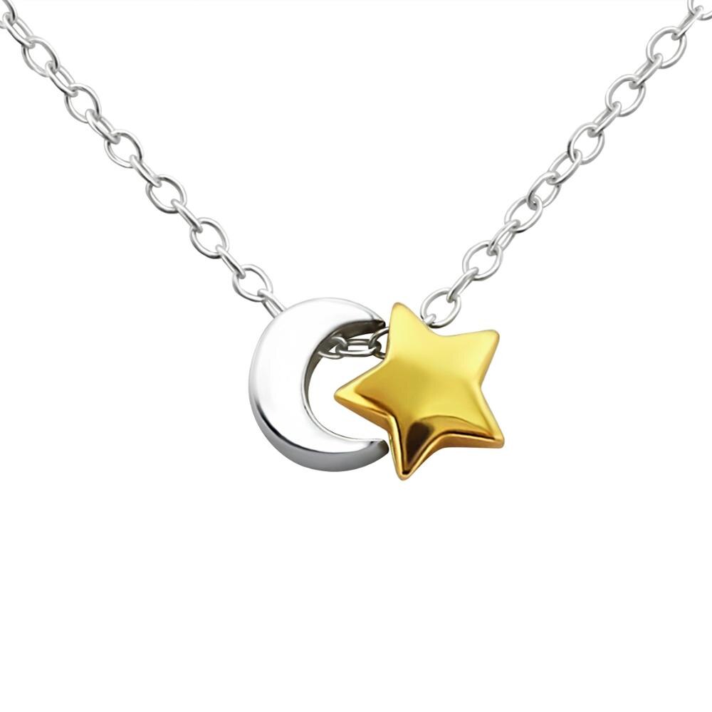 Una estrella dorada y una luna plateada adornan este cautivador collar hecho de plata esterlina para crear el accesorio perfecto para un atuendo de verano. La longitud de la cadena es de 45 cm y los colgantes de luna y plata miden 6 x 6 mm cada uno. La combinación chapada en oro y plata de este collar plateado de luna y estrella le da a la pieza un toque extra de interés.
