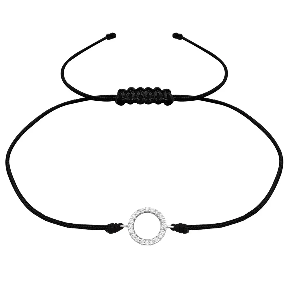 Pulsera con cordón ajustable de círculo de plata Zirconita